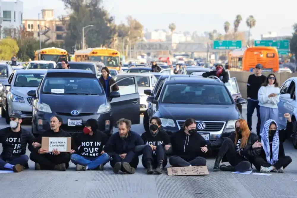 متظاهرون يهود يغلقون طريقا سريعا في لوس أنجلوس لوقف الحرب بغزة