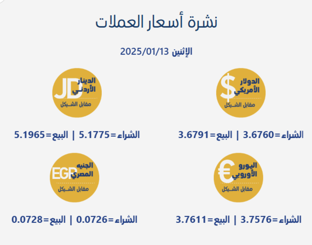 سعر صرف العملات المتداولة في السوق المحلية مقابل الشيقل