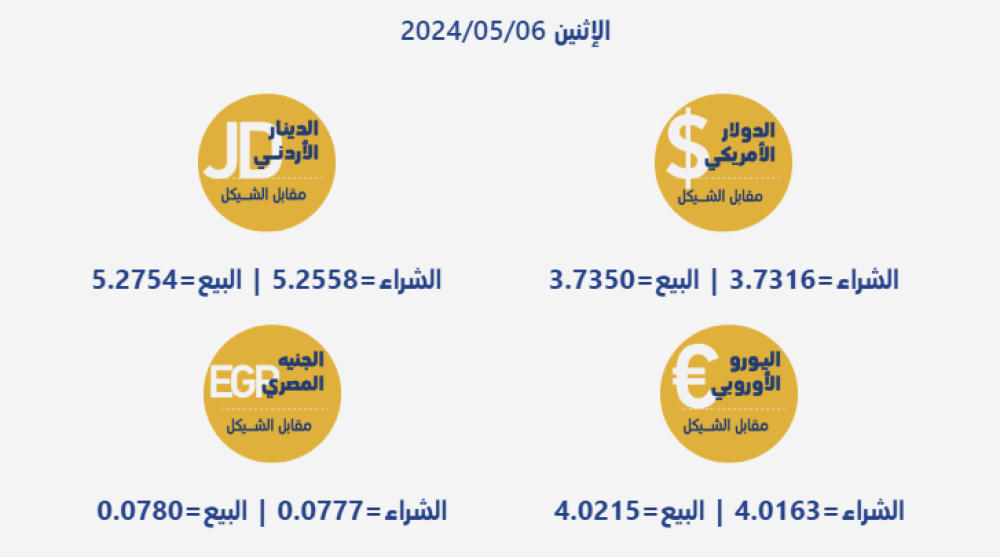 أسعار العملات المتداولة في السوق المحلية مقابل الشيقل