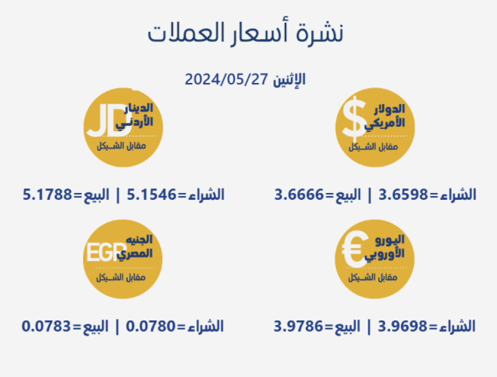 أسعار العملات المتداولة مقابل الشيكل