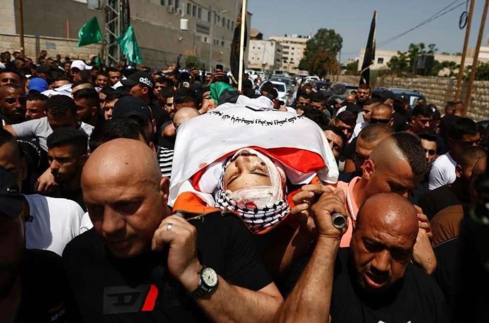 وحمل المشيعون الجثامين على الأكتاف، وجابوا شوارع المدينة ومخيمها، بمشاركة آلاف المواطنين، الذين رددوا الهتافات الغاضبة والمنددة بجرائم الاحتلال بحق شعبنا، ثم أدَّوا الصلاة عليهم، قبل مواراتهم الثرى في مقبرتي الشهداء في الحي الشرقي من مدينة جنين ومخيمها.