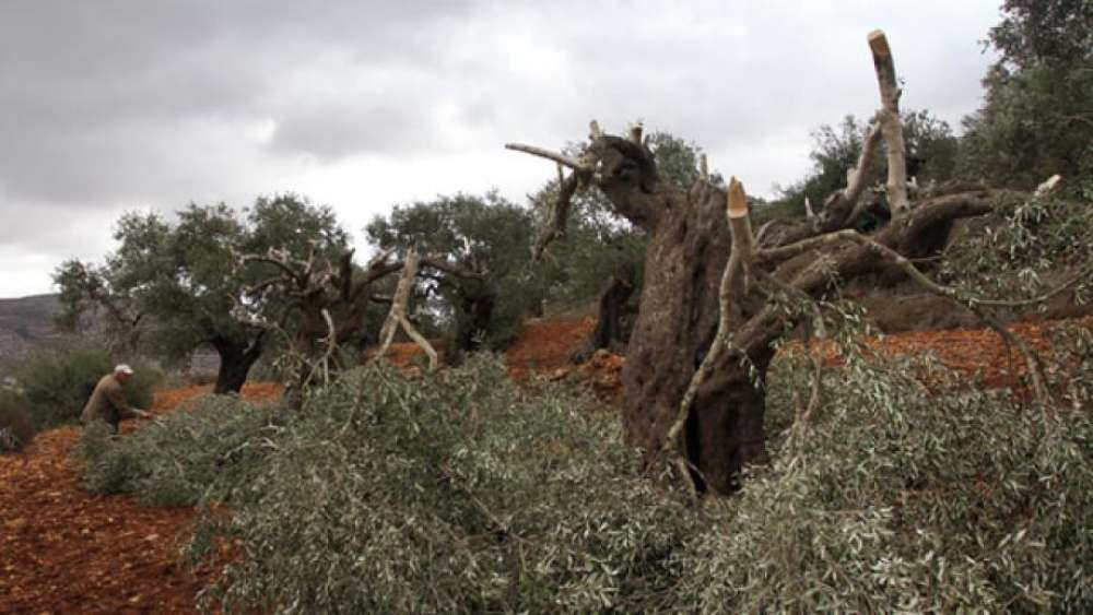 مستعمرون يقتلعون 40 شجرة زيتون في ياسوف شرق سلفيت