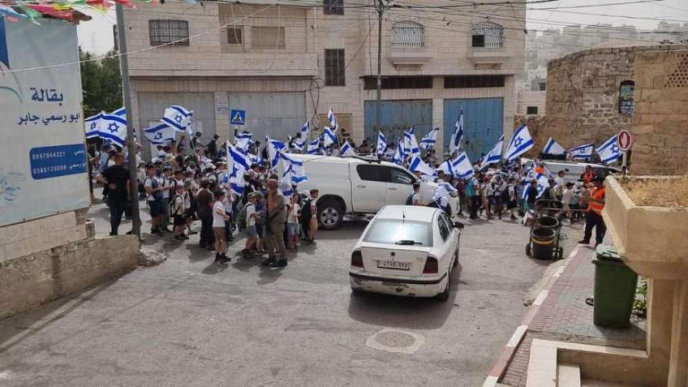 وأفادت مصادر، بأن مئات المستوطنين شاركوا وهم يرفعون الاعلام الاسرائيلية، بمسيرة استفزازية انطلقت من مستوطنة "بيت رومانو" ومدرسة أسامة بن المنقذ التي حولها الاحتلال الى معهد ديني لتخريج الحاخامات، وجابوا شوارع وأزقة وسط مدينة الخليل وصولا لساحات وباحات الحرم، ورددوا، هتافات عنصرية معادية للعرب ابرزها "الموت للعرب" كما عرقلت قوات الاحتلال مرور المواطنين في البلدة القديمة لعدة ساعات ومنعت السكان الوصول الى منازلهم.