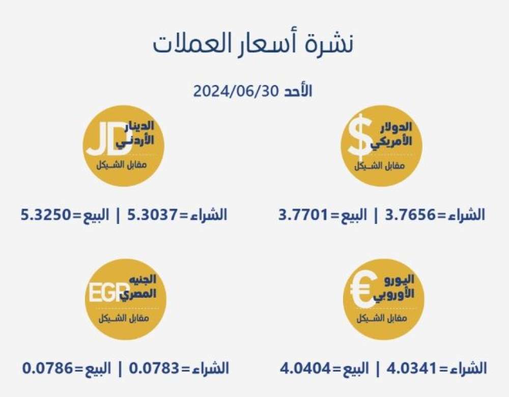 أسعار العملات المتداولة محلياً في السوق مقابل الشيكل