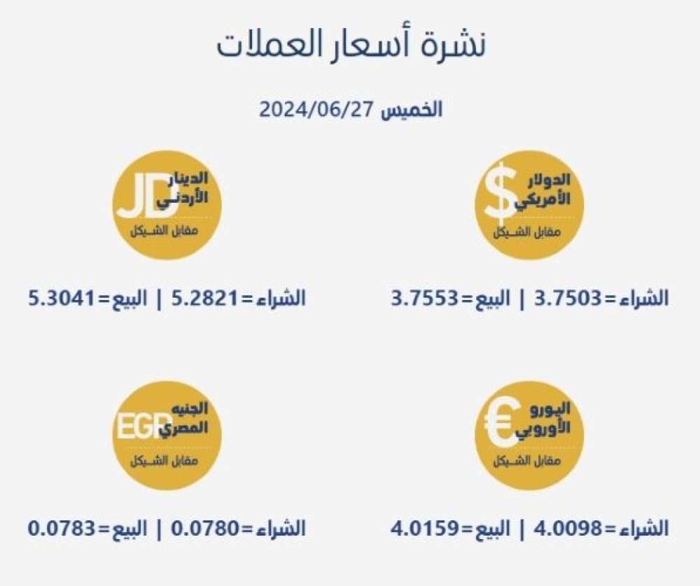 أسعار العملات المتداولة محلياً مقابل الشيكل