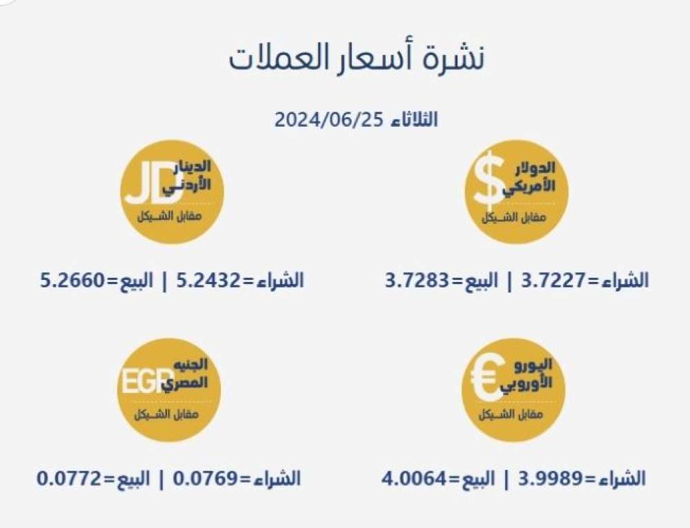 اسعار العملات المتداولة محلياً مقابل الشيقل