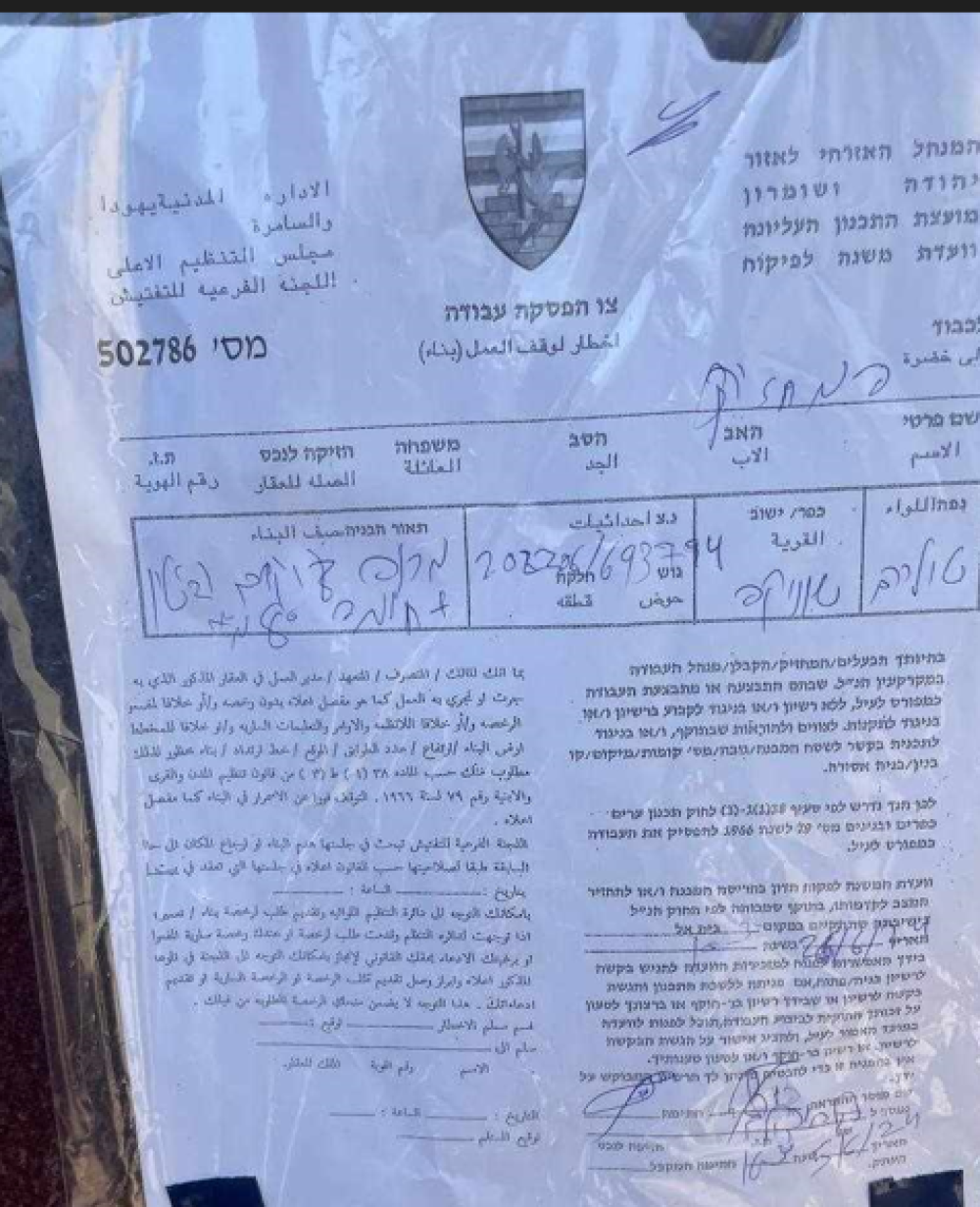 الاحتلال يخطر بوقف العمل والبناء في الأراضي الزراعية غرب شويكة شمال طولكرم