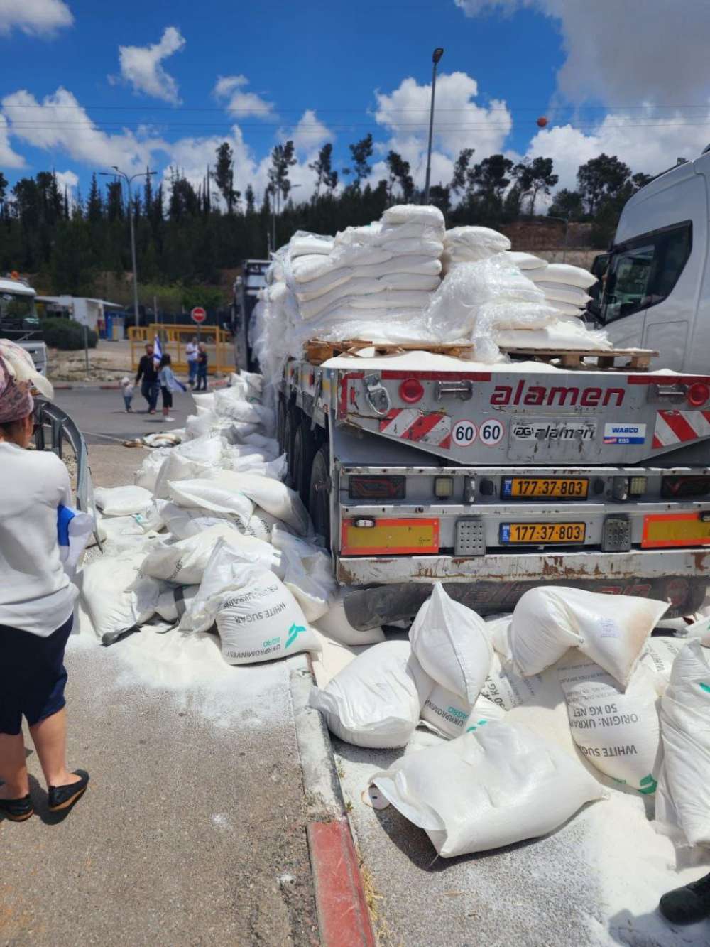 مستعمرون يمنعون مرور شاحنات مساعدات من الضفة إلى غزة