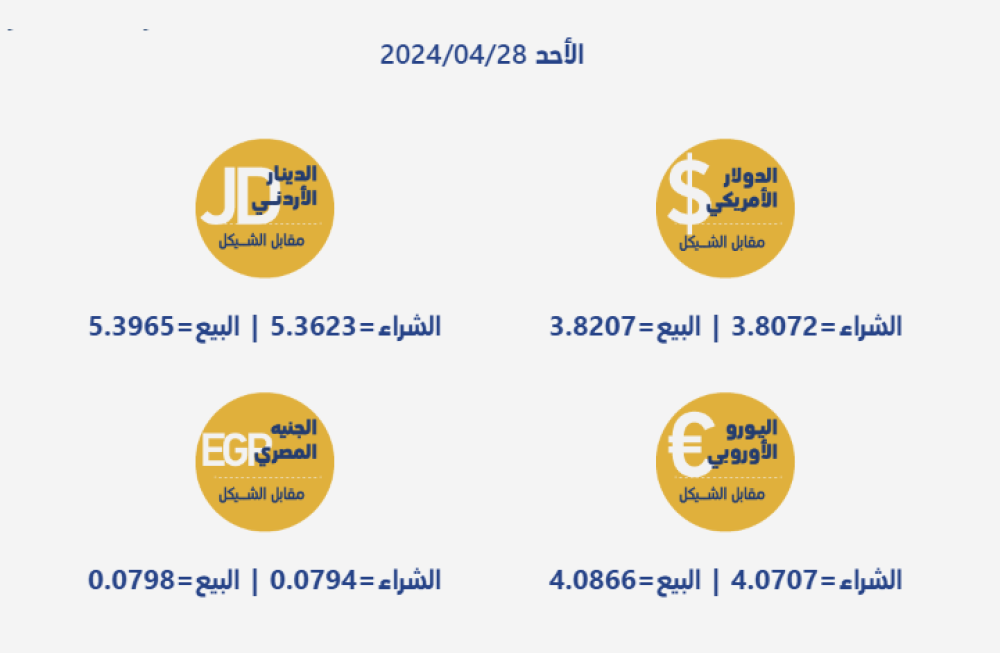 أسعار العملات الرئيسية المتداولة مقابل الشيقل