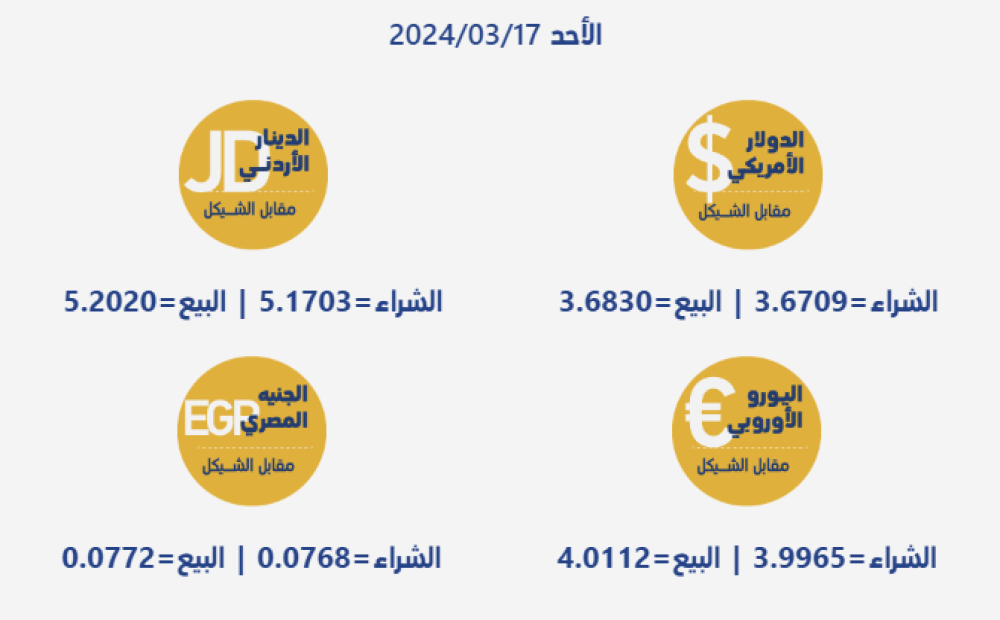أسعار صرف العملات مقابل الشيقل اليوم الأحد في السوق