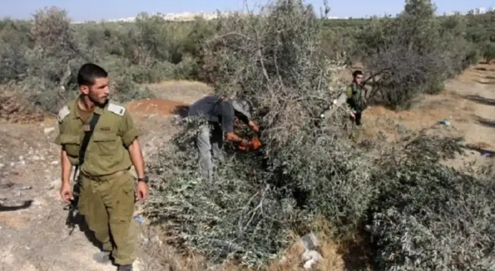 الاحتلال يقتلع ويحطم أشجار زيتون ويهدم وحدة صحية وبئر مياه جنوب الخليل