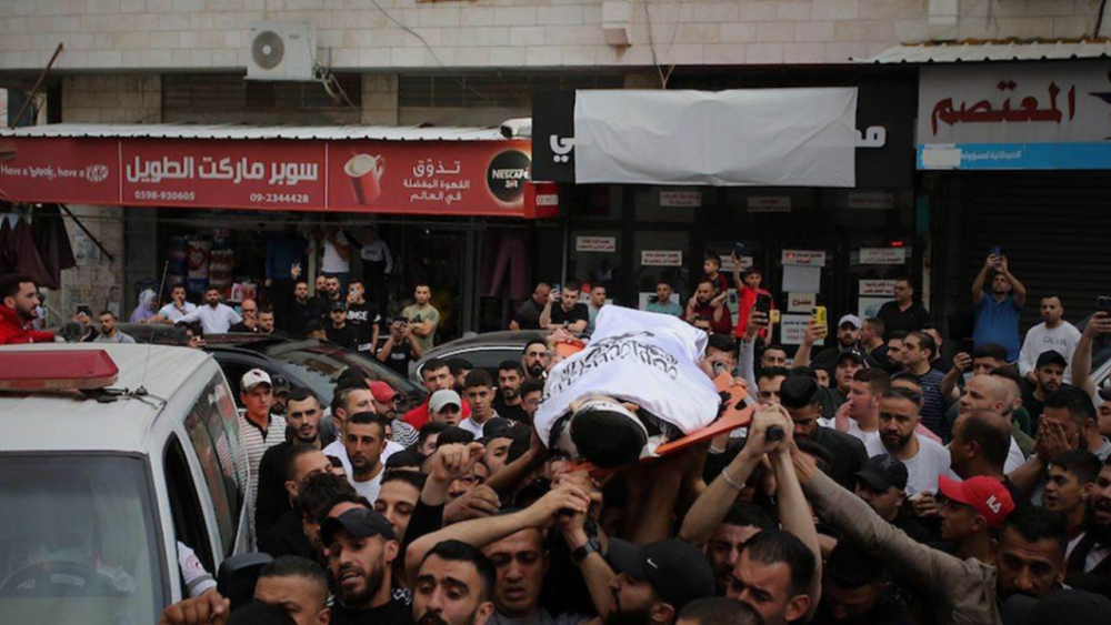 جماهير غفيرة تشييع الشهداء جهاد وعدي الشامي ومحمد الدبيك في نابلس