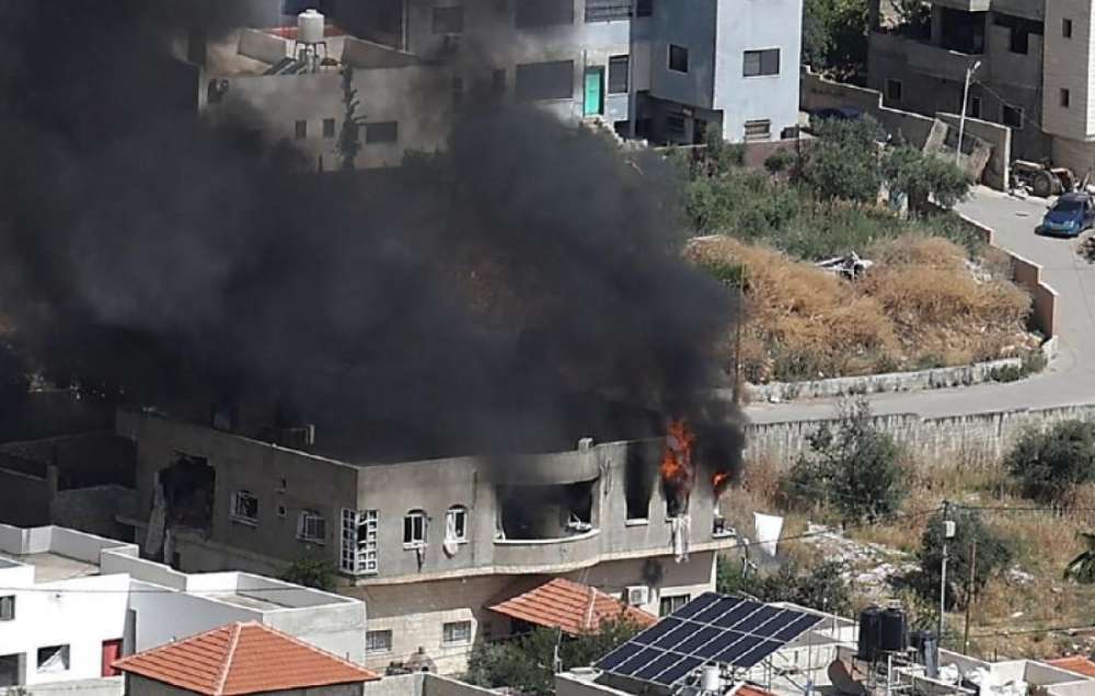 مستوطنون يحرقون منزلا بين قريتي قصرة وجالود جنوب نابلس