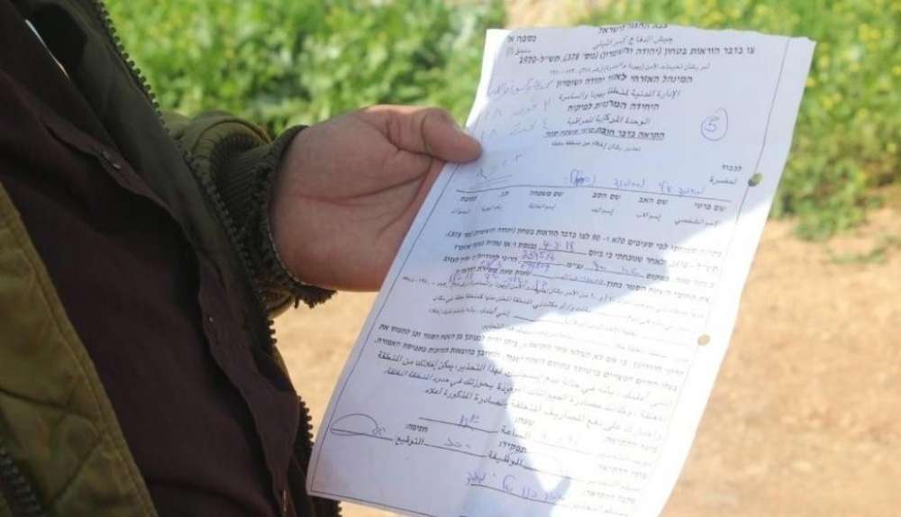 الاحتلال يخطر بوقف العمل والبناء في ثلاثة منازل وبركسين في بلدة نعلين