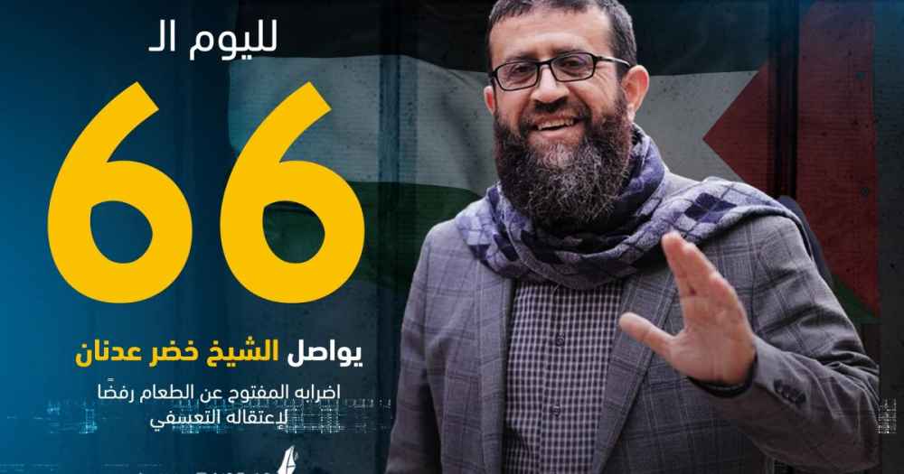 الأسير خضر عدنان يواصل إضرابه المفتوح عن الطعام لليوم الـ66 على التوالي