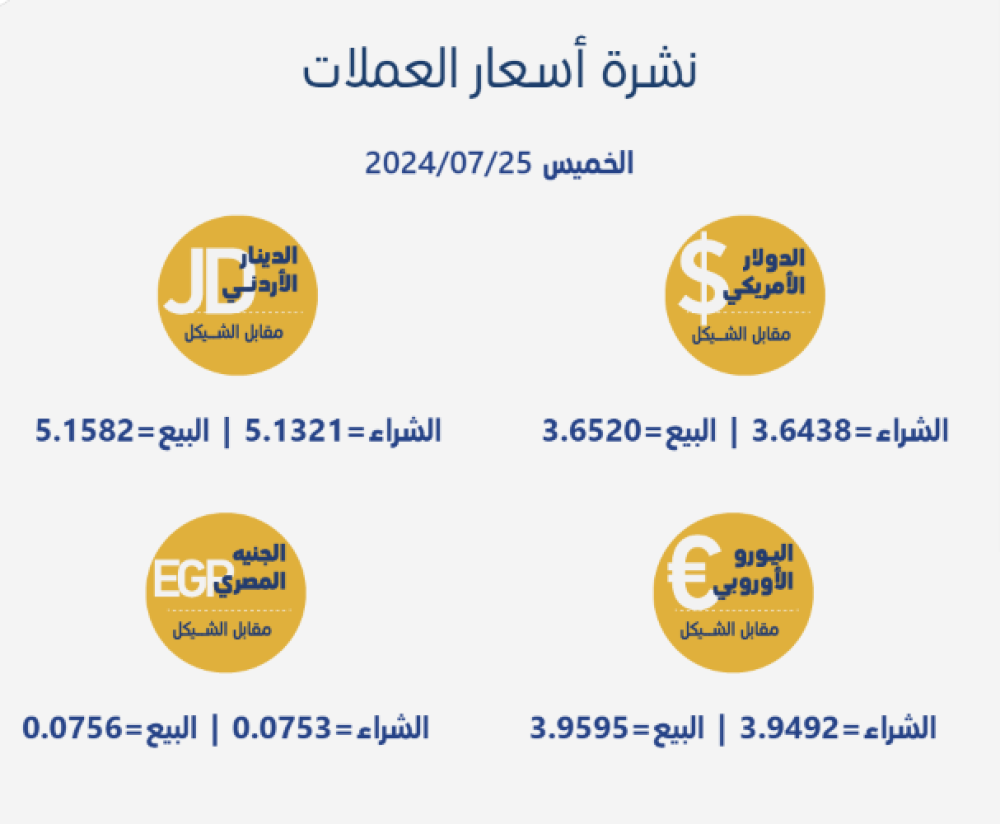 أسعار العملات مقابل الشيقل بحسب سلطة النقد المزيد