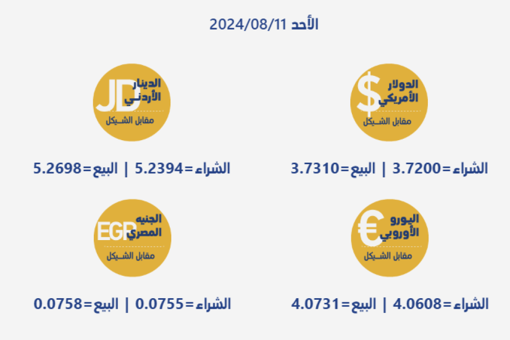 أسعار العملات بحسب سلطة النقد الفلسطينية