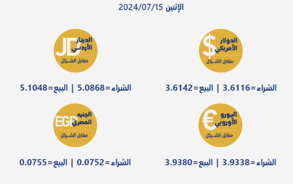 أسعار صرف العملات المتداولة في السوق مقابل الشيقل